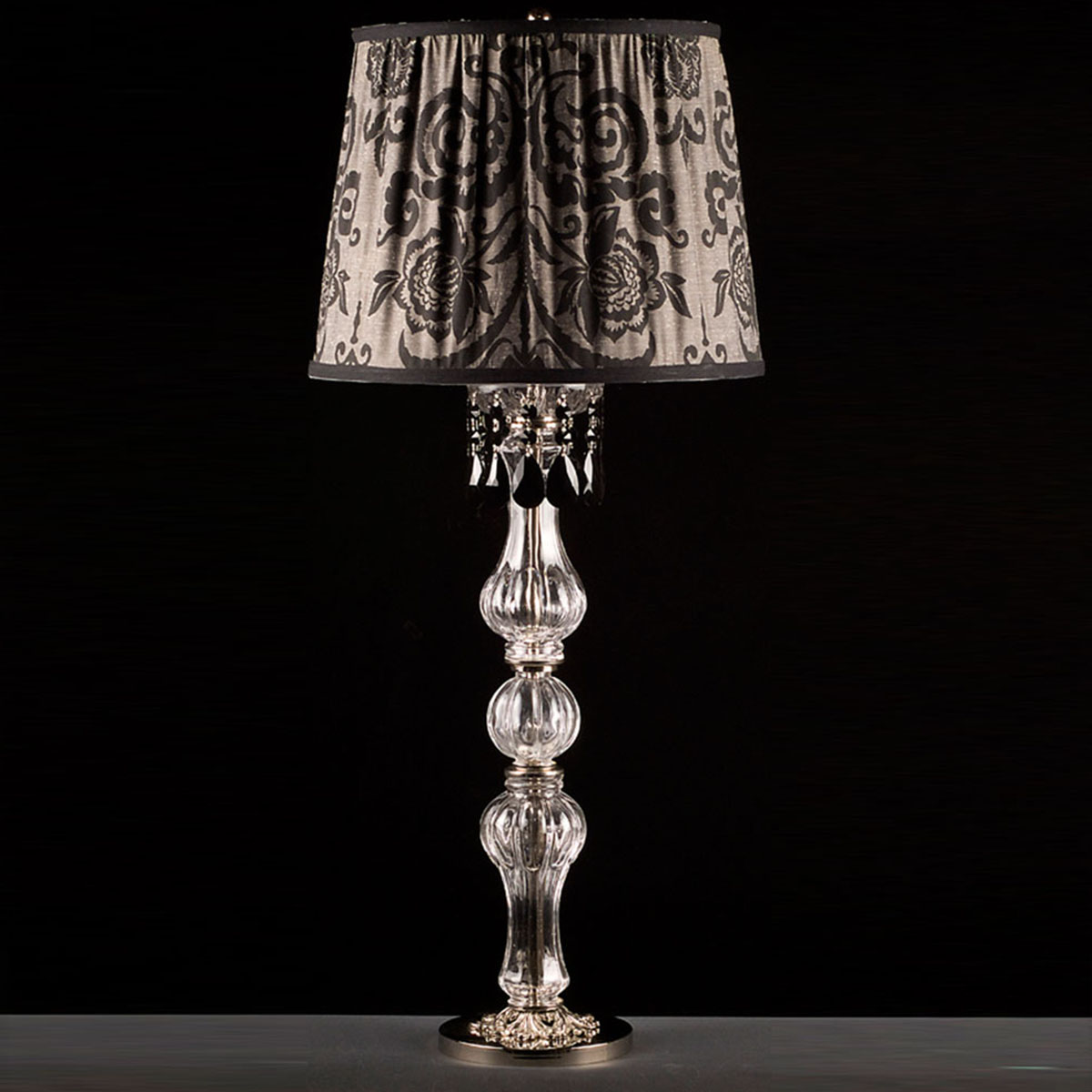 Terminación Níquel brillante con Caireles en Cristal Negro.