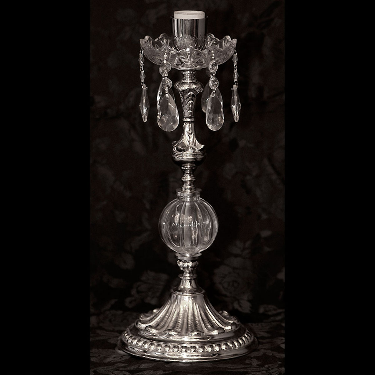 Lámapara de Mesa en fundición de Bronce y terminación Niquel con Caireles Almendras.